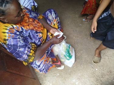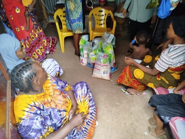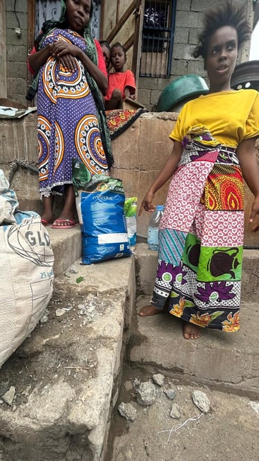 Nous avons pu visiter plusieurs familles afin de leur distribuer de la nourriture et de l’eau, des denrées nécessaires à leur quotidien. Au total nous avons pu distribuer aux plus démunis environ: 270 kg de riz/pâtes, 210 litres d'eau en bouteille, 130 kg d'haricots et de farine, 150 boites de sardine, mais aussi de l'huile, du sucre, etc.